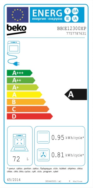 Standard 60cm - Air Chaud - Nettoyage pyrolytique - 72L - Inox - Four multifonction / Beko BBIE 12300 XP