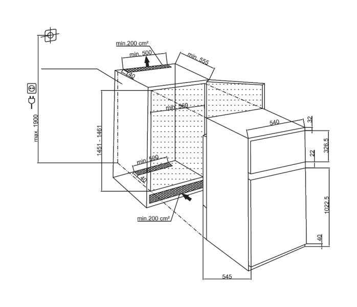 | Hauteur frigo-congélateur | 140 - 149 cm hauteur |