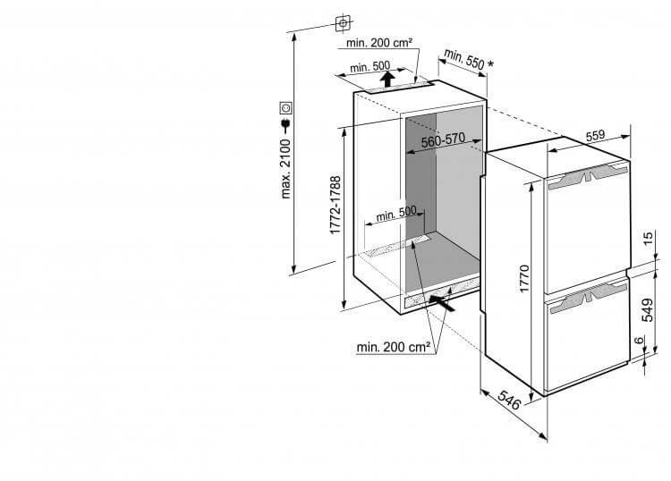| Hauteur frigo-congélateur | 170 - 179 cm hauteur |