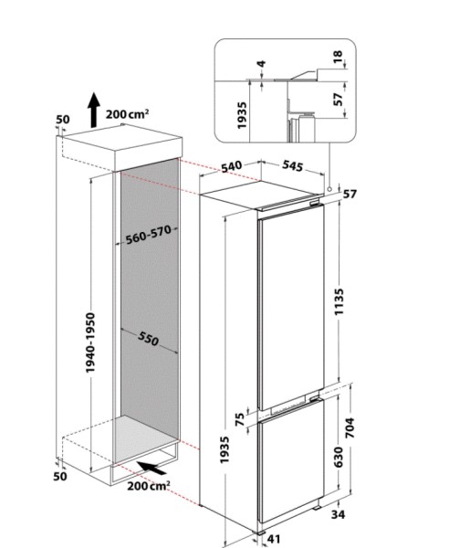 | Hauteur frigo-congélateur | 190 - 199 cm hauteur |