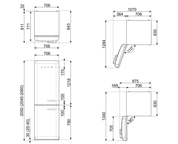 Réfrigérateur Retro | E | 205 cm