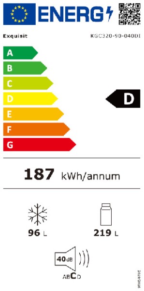 186cm - 219L+96L - éclairage LED - Inox - Combiné frigo-congélateur pose libre / Exquisit KGC 320-90-040 DINOX