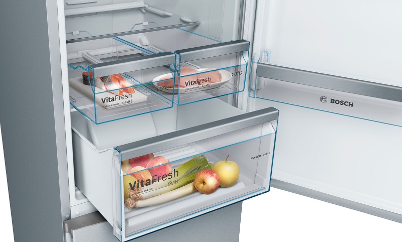 203cm - 260L+103L - Inox - NoFrost - 0°C Zone VitaFresh - Combiné frigo-congélateur pose libre / Bosch KGN 39 VICT