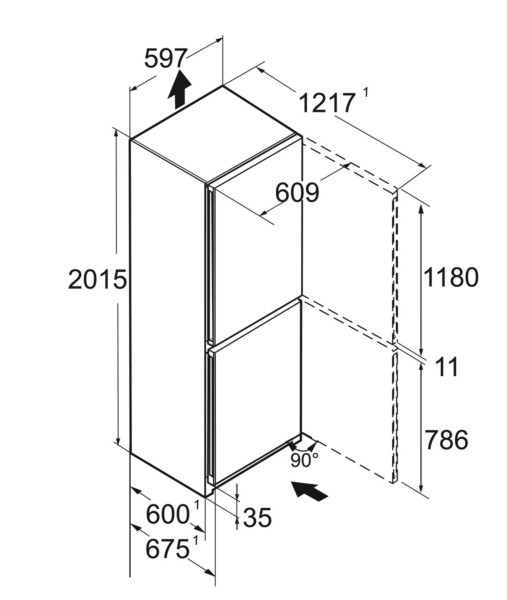 Réfrigérateur 2 portes avec congélateur en bas (plus haut que 85cm) | D | 201 cm