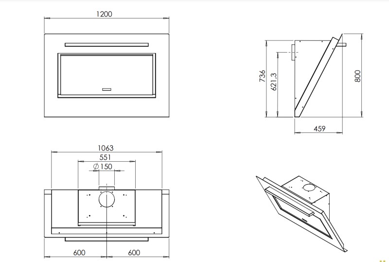 Évacuation: ø 150 mm derrière