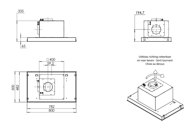 - Les hottes sans moteur fonctionnent avec un moteur à distance. Le moteur doit être commandé à part.