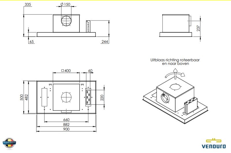 - Les hottes sans moteur fonctionnent avec un moteur à distance. Le moteur doit être commandé à part.