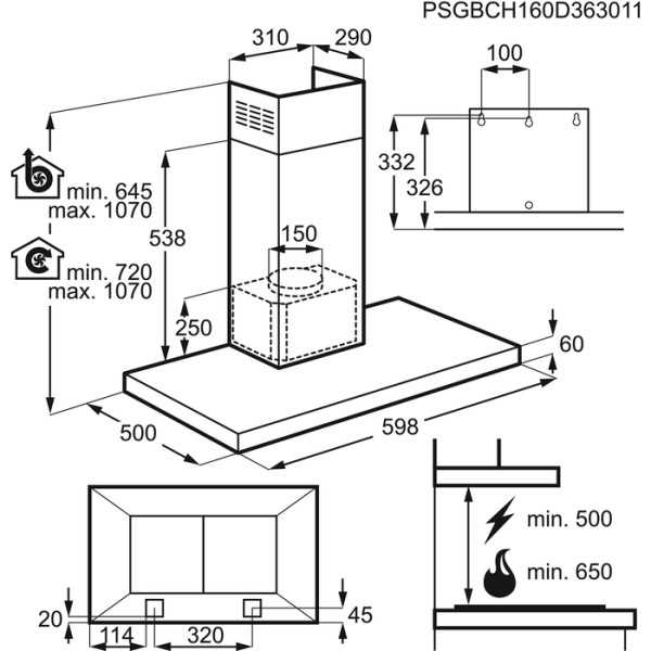 | Diamètre du tuyau d'évacuation | ø 150 mm |