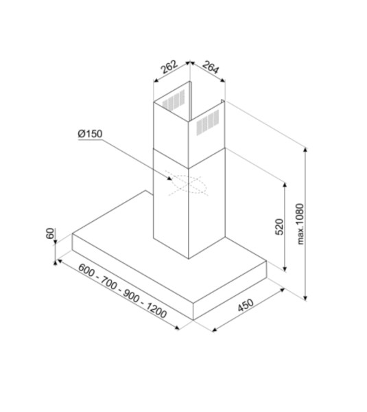 90 cm largeur | Système d'évacuation d'air OU de recyclage (filtre à charbon/filtre à plasma) | haut: de 700 m3/h