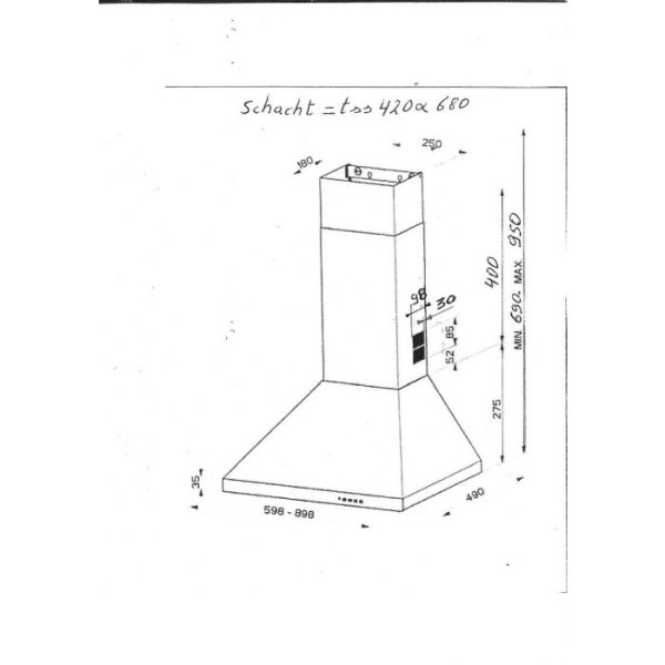 90 cm largeur | Système d'évacuation d'air OU de recyclage (filtre à charbon/filtre à plasma) | bas: à 400 m3/h