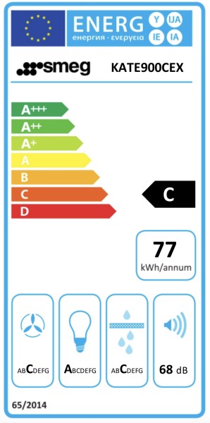 Consommation d'énergie annuelle (AEC): 77 KWh/a Classe d'efficacité énergétique: C