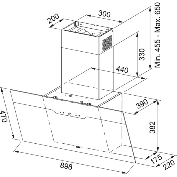 CARACTERISTIQUESHotte murale 900 mm avec technologie Drip Free