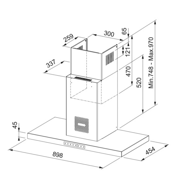 CARACTERISTIQUESHotte murale 900 mm avec technologie Air Hub