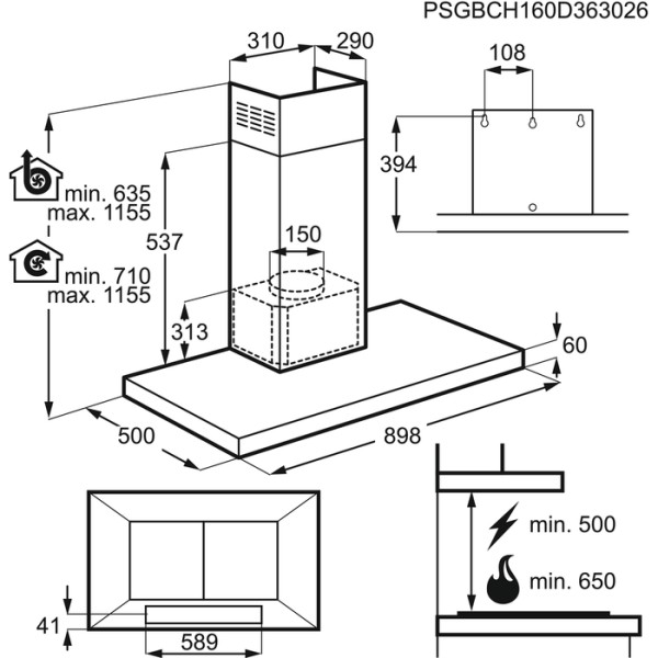 | Diamètre du tuyau d'évacuation | ø 150 mm |
