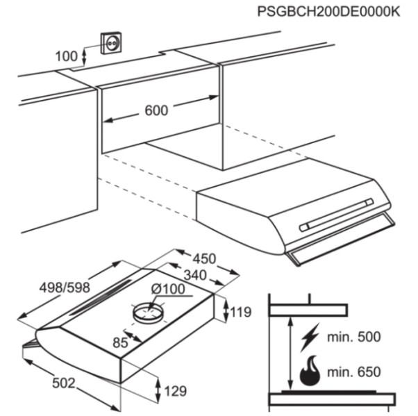 60 cm largeur | Système d'évacuation d'air OU de recyclage (filtre à charbon/filtre à plasma) | bas: à 400 m3/h