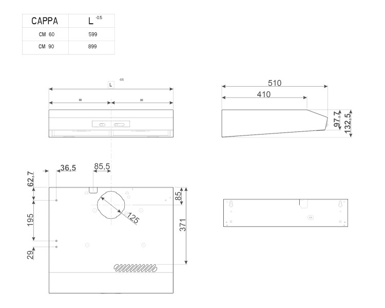 | Largeur hotte | 90 cm largeur |