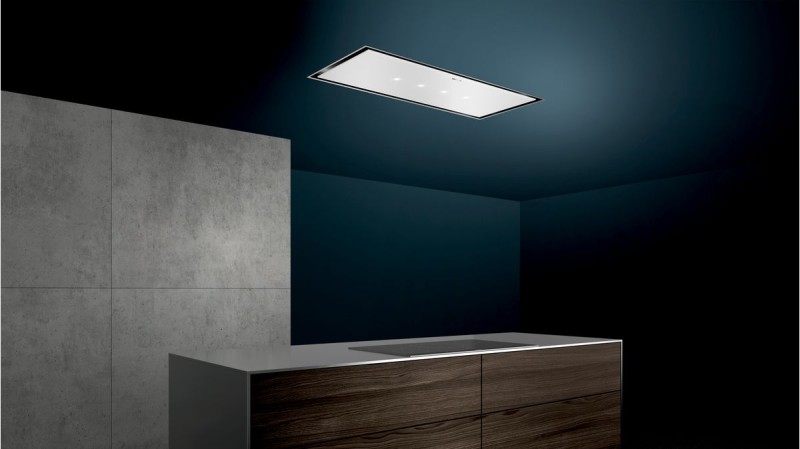 Hotte à fixer au plafond, au-dessus de l'îlot de cuisson