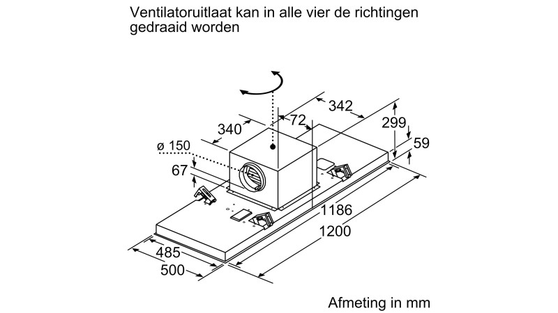 Dimensions d'encastrement (HxLxP): 299 x 1188 x 487 mm