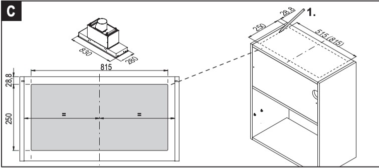 80 cm largeur | Système d'évacuation d'air OU de recyclage (filtre à charbon/filtre à plasma) | normal: de 400 à 700 m3/h