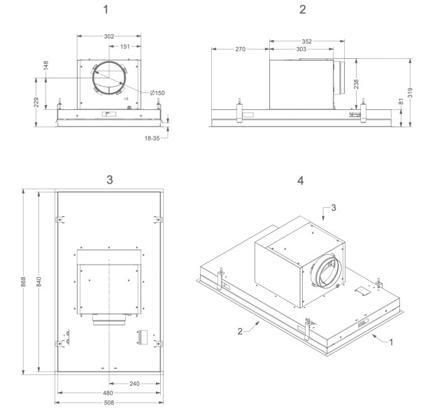 | Diamètre du tuyau d'évacuation | ø 150 mm |