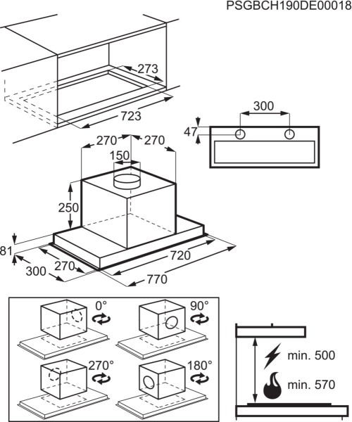 70 cm largeur | Système d'évacuation d'air OU de recyclage (filtre à charbon/filtre à plasma) | normal: de 400 à 700 m3/h