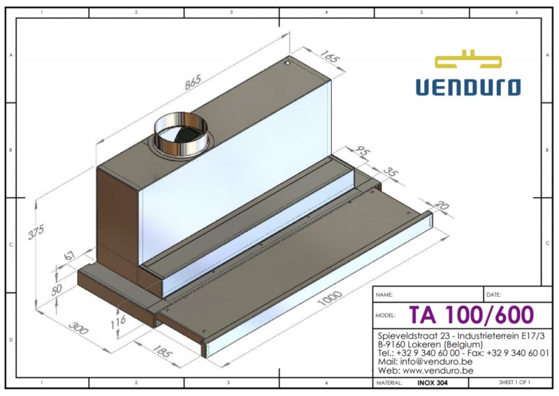100 cm largeur | Système d'évacuation d'air OU de recyclage (filtre à charbon/filtre à plasma) | normal: de 400 à 700 m3/h