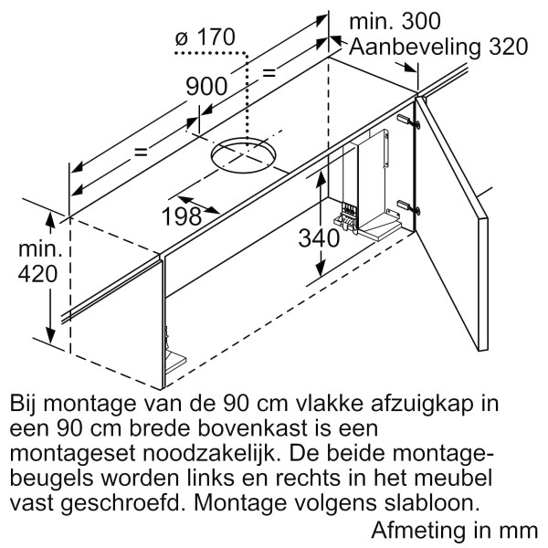 Hotte pouvant être installée dans une armoire suspendue de 60cm ou 90cm de large