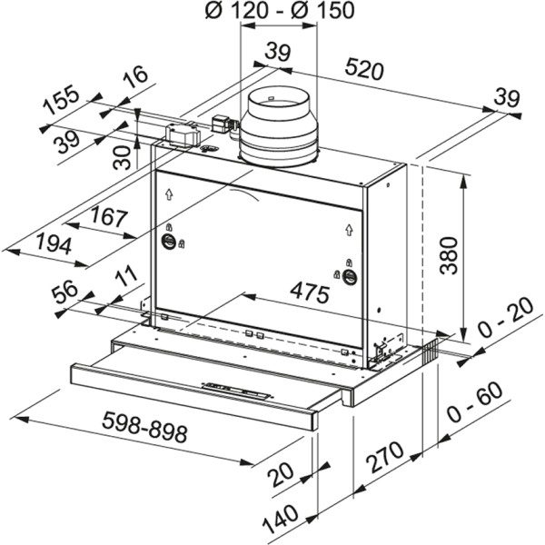 CARACTERISTIQUESHotte télescopique 600 mm / 900 mm