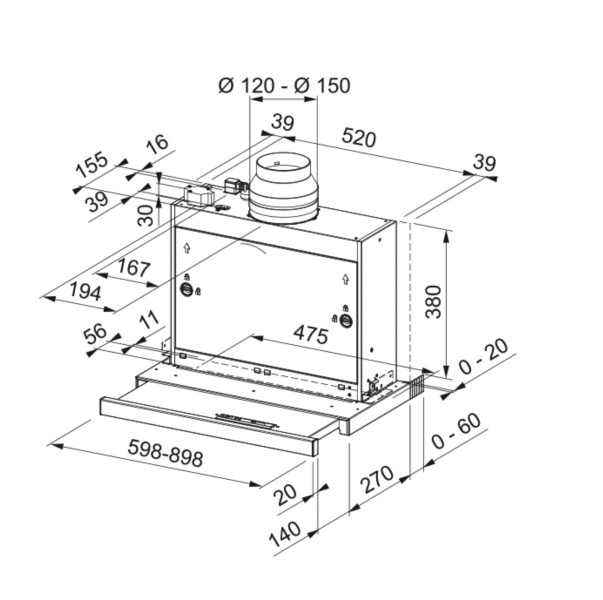 CARACTERISTIQUESHotte télescopique 600 mm / 900 mm