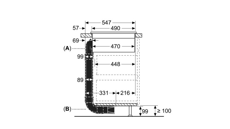Kit d'accessoires pour une installation en recyclage partiellement raccordée de votre table aspirante. Pour les cuisines dont la profondeur du plan de travail est de 60 cm ou plus.Le kit contient :