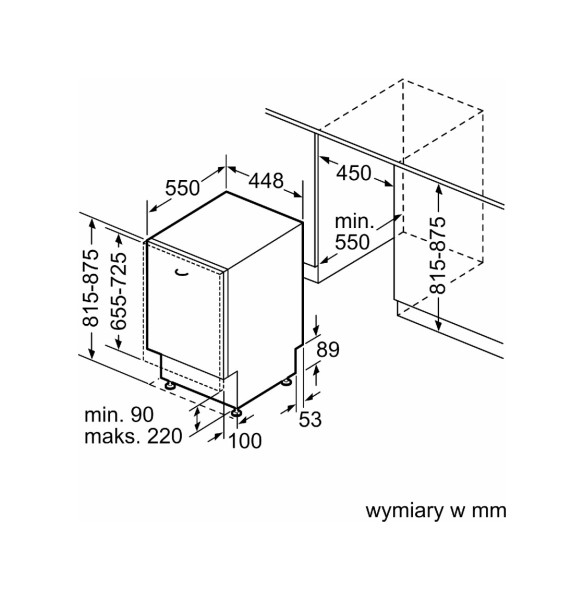 | Profondeur de la niche min. | 550 mm |