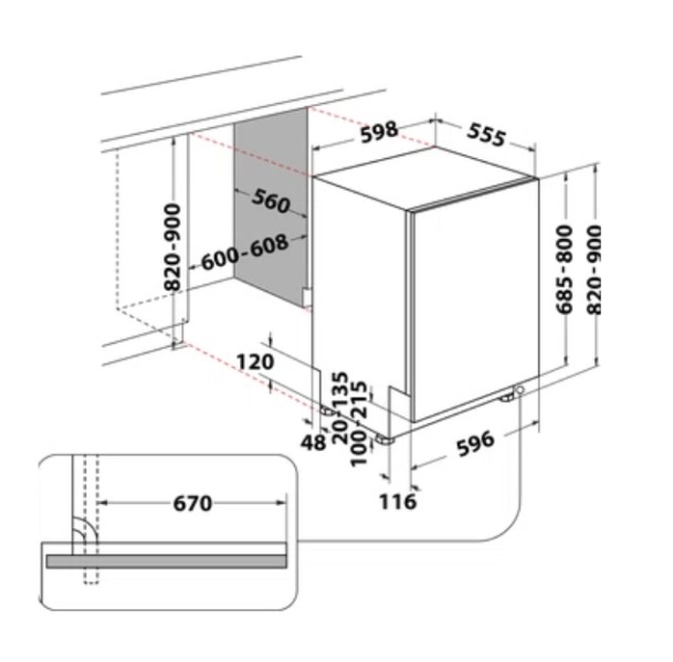 | Hauteur du lave vaisselle (ci-dessous aussi vérification de la hauteur de la plante) | 81,5cm à 86,5cm (Standard) |