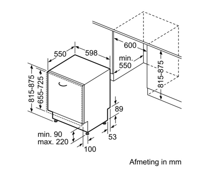 | Hauteur du lave vaisselle (ci-dessous aussi vérification de la hauteur de la plante) | 81,5cm à 86,5cm (Standard) |