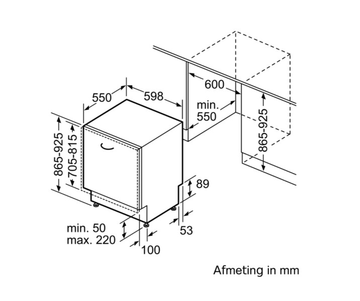 Tiroir à couverts - 42db silencieux - 86cm hauteur - Pour plan de travail surélevé - Charnières varios - OpenAssist - AutoOpen Dry - Programme court - Lave-vaisselle complètement intégrable / Siemens