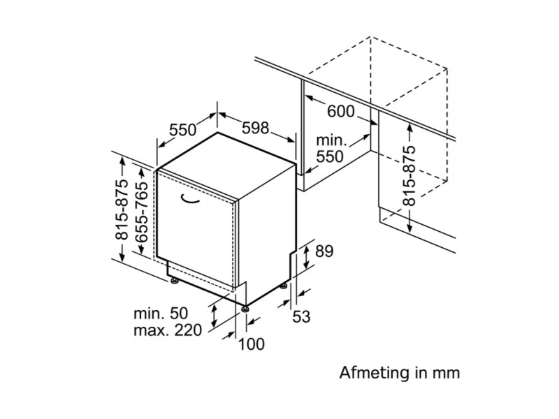 | Hauteur du lave vaisselle (ci-dessous aussi vérification de la hauteur de la plante) | 81,5cm à 86,5cm (Standard) |