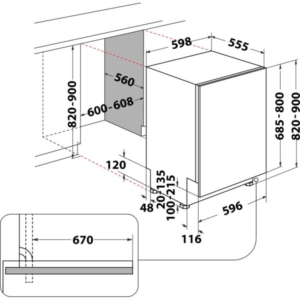 | Hauteur du lave vaisselle (ci-dessous aussi vérification de la hauteur de la plante) | 81,5cm à 86,5cm (Standard) |