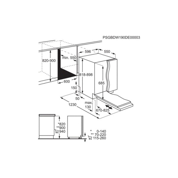 Dimensions intégrées (min-maxHxBxD) en mm : 820-900x600x570