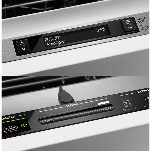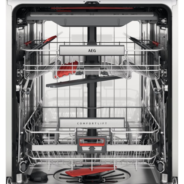 Tiroir à couverts - 39dB très économe - Comfortlift - Charnières coulissantes - AirDry (porte s'ouvre automatiquement 10cm en phase de séchage final pour un meilleur séchage) - Programme court - Lave-vaisselle complètement intégrable / AEG FSK 93847 P