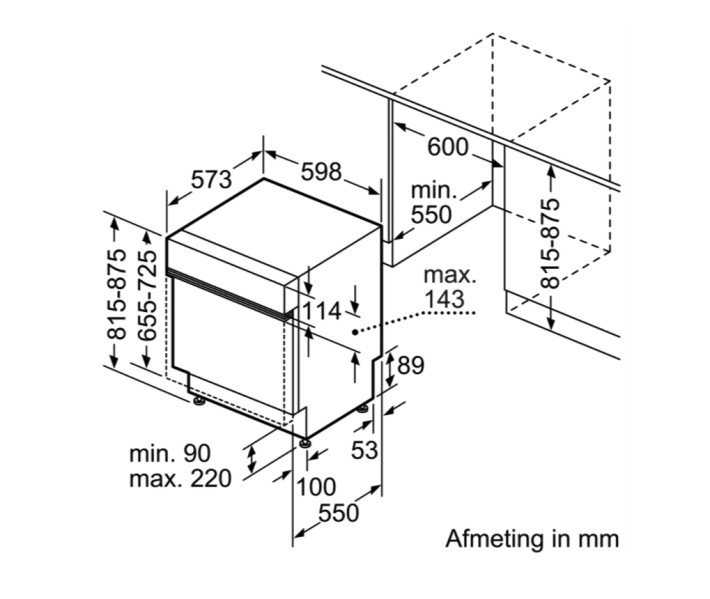 | Hauteur du lave vaisselle (ci-dessous aussi vérification de la hauteur de la plante) | 81,5cm à 86,5cm (Standard) |
