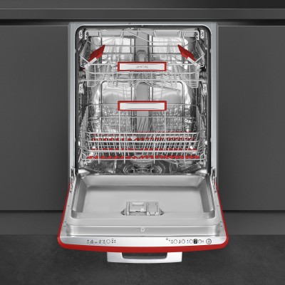Tiroir à couverts - 44dB silencieux - Rouge - 11 programmes - Programme court - Lave-vaisselle complètement intégrable / Smeg