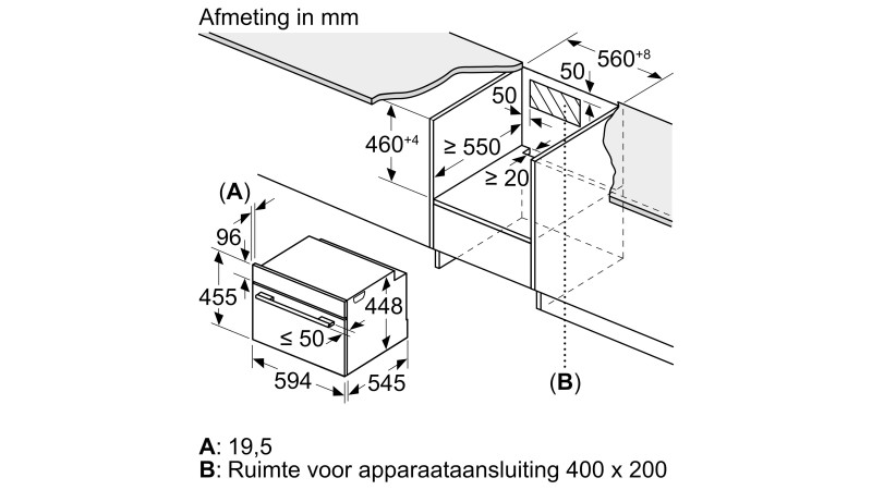 Dimensions d'encastrement (HxLxP): 450-452 x 560-568 x 550 mm