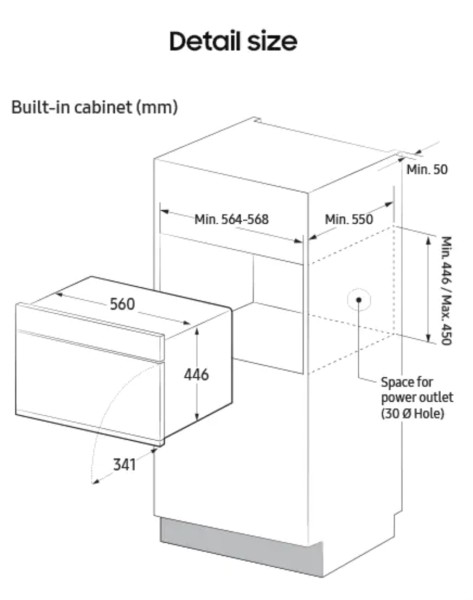 Dimensions d’encastrement (L x H x P): 560 x 446 x 549 mm