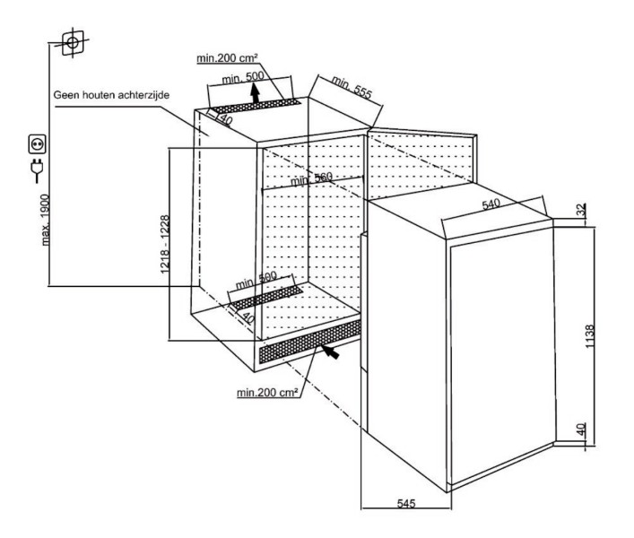 | Hauteur de la niche min | 1225 mm |