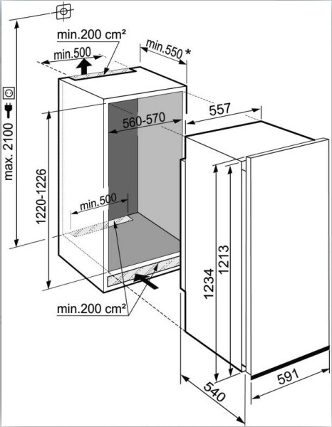 122cm - Cadre décor - avec congélateur - 167L+16L - Réfrigérateur encastrable / Liebherr