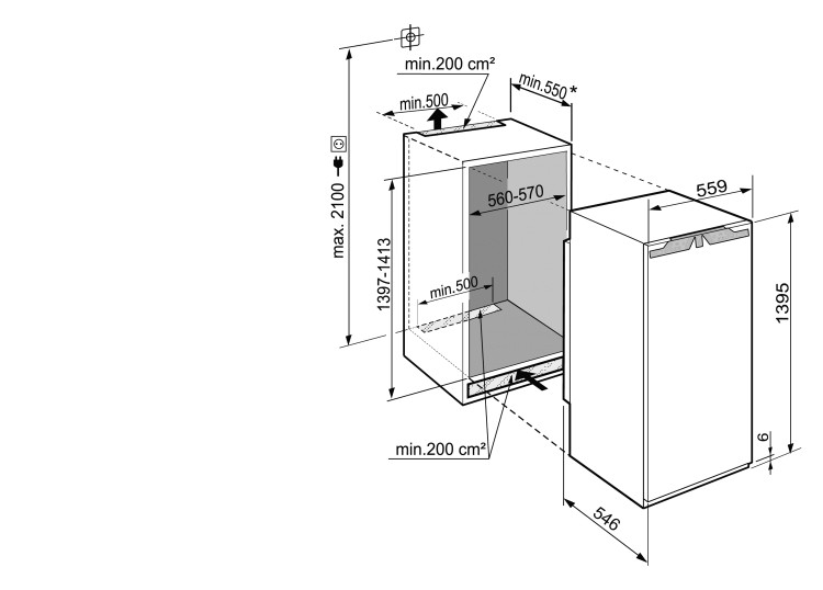| Profondeur de la niche min. | 550 mm |