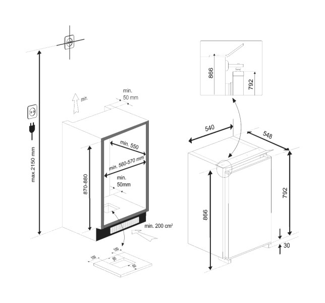 | Hauteur de la niche min | 880 mm |