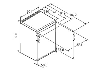 85cm - 50cm large - 136L - blanc - Frigo modèle table / Liebherr