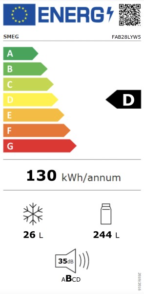 Smeg FAB 28LYW 5 Réfrigérateur pose-libre à 1 porte