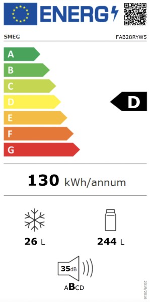 153cm - avec congélateur - 244L+26L - 38dB - Charnières à droite - Crème - Zone 0 degrés - 93cm de large avec la porte complètement ouverte! - Frigo pose libre / Smeg FAB 28RCR 5