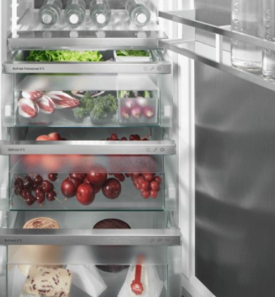 3 BioFresh-Safes avec SoftTelescopic, 2 Fruit & Vegetable-Safes, dont 1 avec HydroBreeze, 1 Meat & Dairy-Safe, 1 système FlexSystem